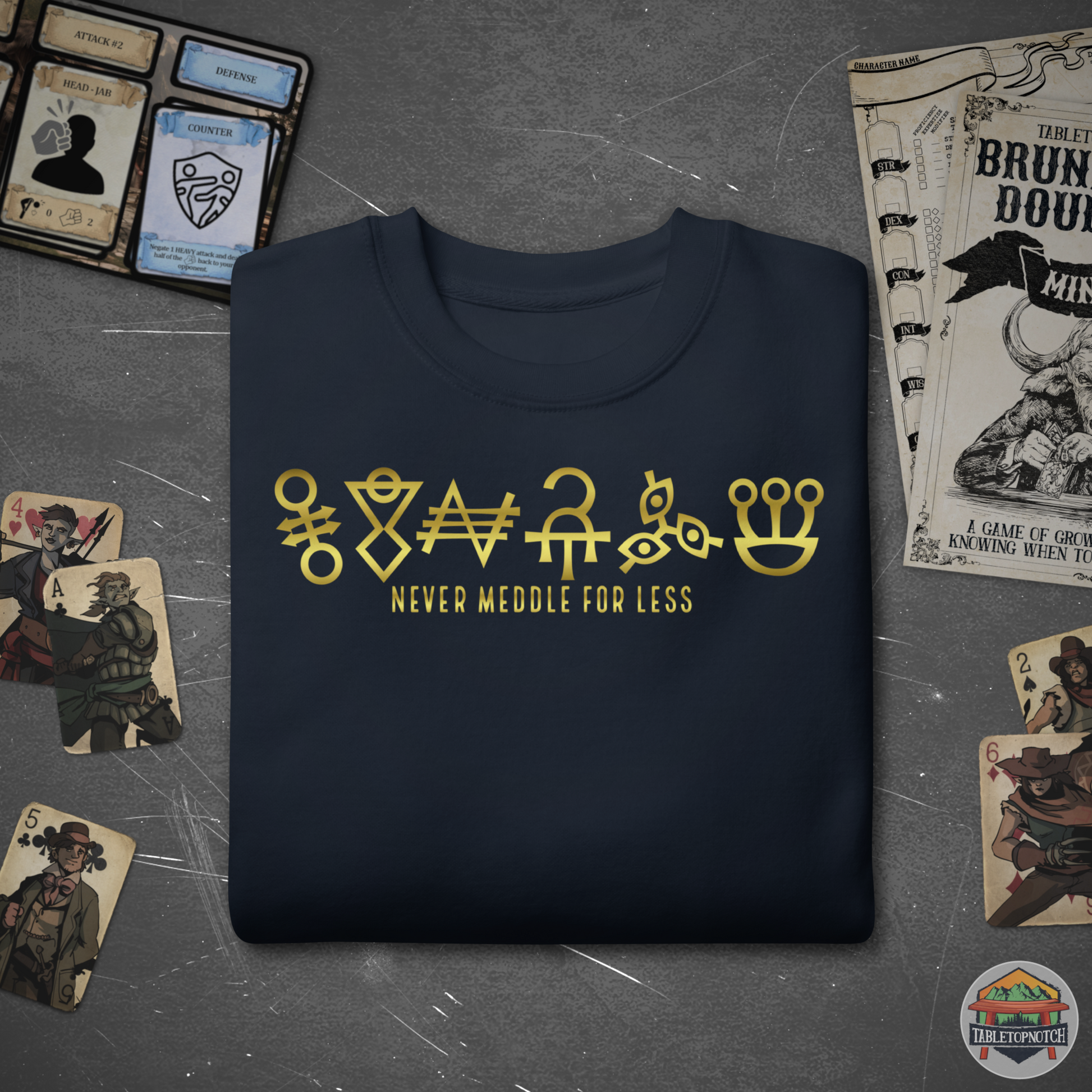 Prepare your mind and body for the ultimate winter comfort: a sweatshirt combining the powers of all the Meddling Gods. But beware of that Bufmir fellow. He's always up to something.
